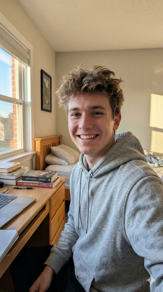 A dark academia aesthetic portrait based on the uploaded image, featuring the subject with [100% identical and same face in uploaded images] in a beautiful, grand library. They are surrounded by stacks of books and a laptop. They are wearing [OUTFIT: a cozy sweater vest, glasses, plaid blazer]. They look focused and intelligent. A mood board on the wall says "Class of 2026". Embedded Branding: The text "GetAiPrompt.in" is written on a sticky note attached to the laptop. Top Bar: A horizontal black bar at the very top edge containing the text "ACADEMIC WEAPON" in bold white cinematic font. --ar 9:16