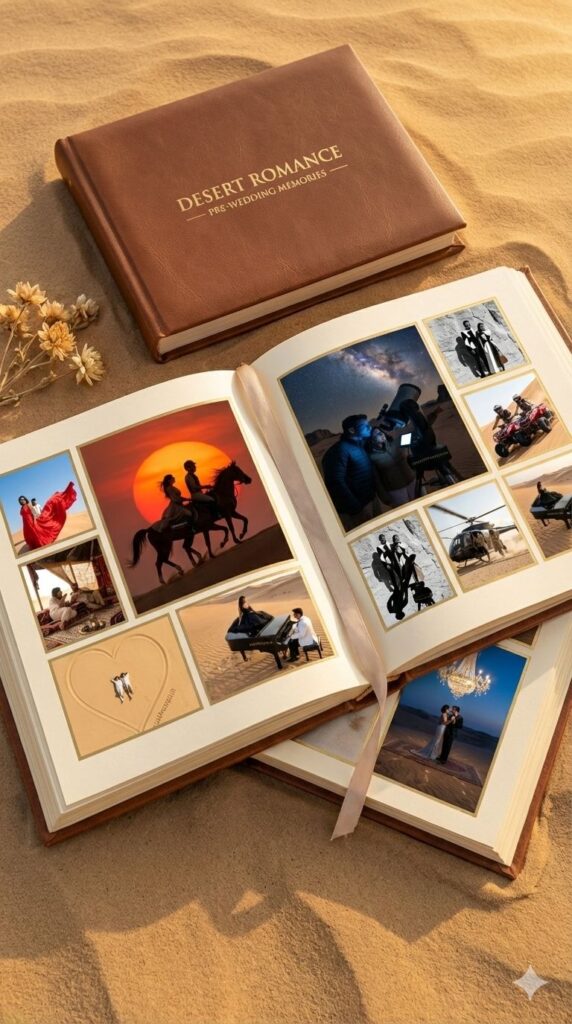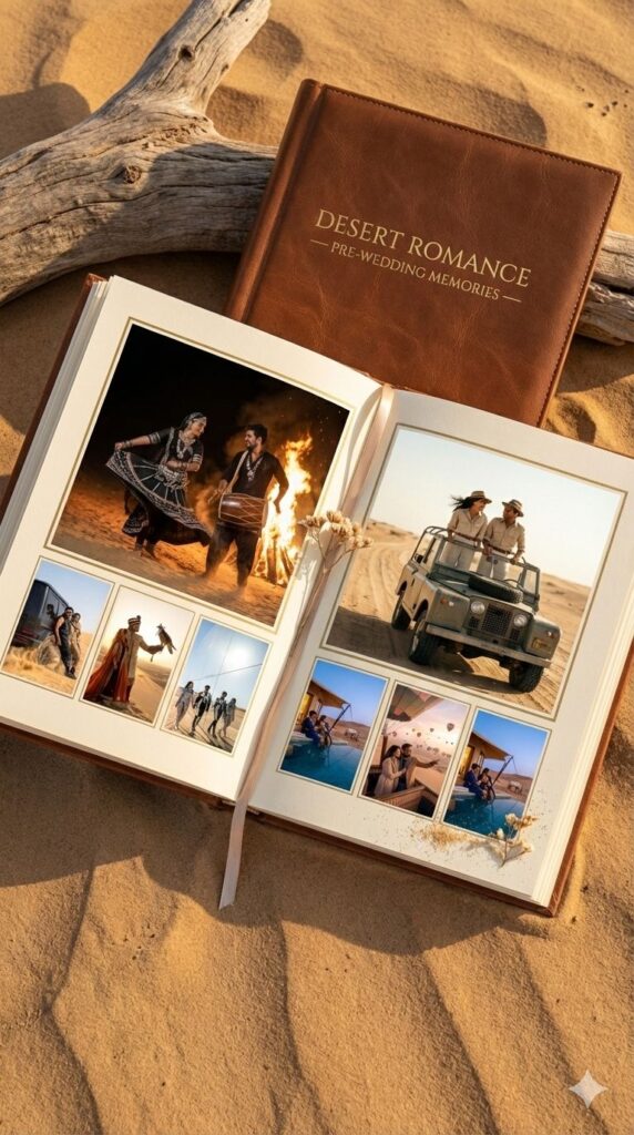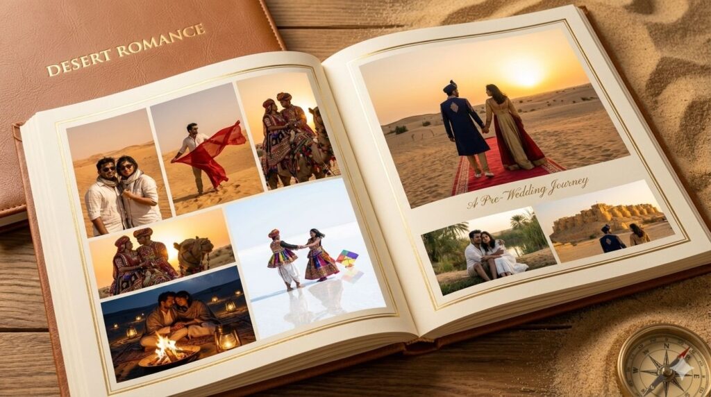 Namaste! There is something magical about the desert. The golden sands, the endless horizon, and the dramatic sunsets make it the perfect backdrop for an Indian Pre-Wedding shoot. Whether it’s the royal vibes of Jaisalmer, the white salt of Kutch, or the luxury dunes of Dubai, the desert aesthetic is trending hard.