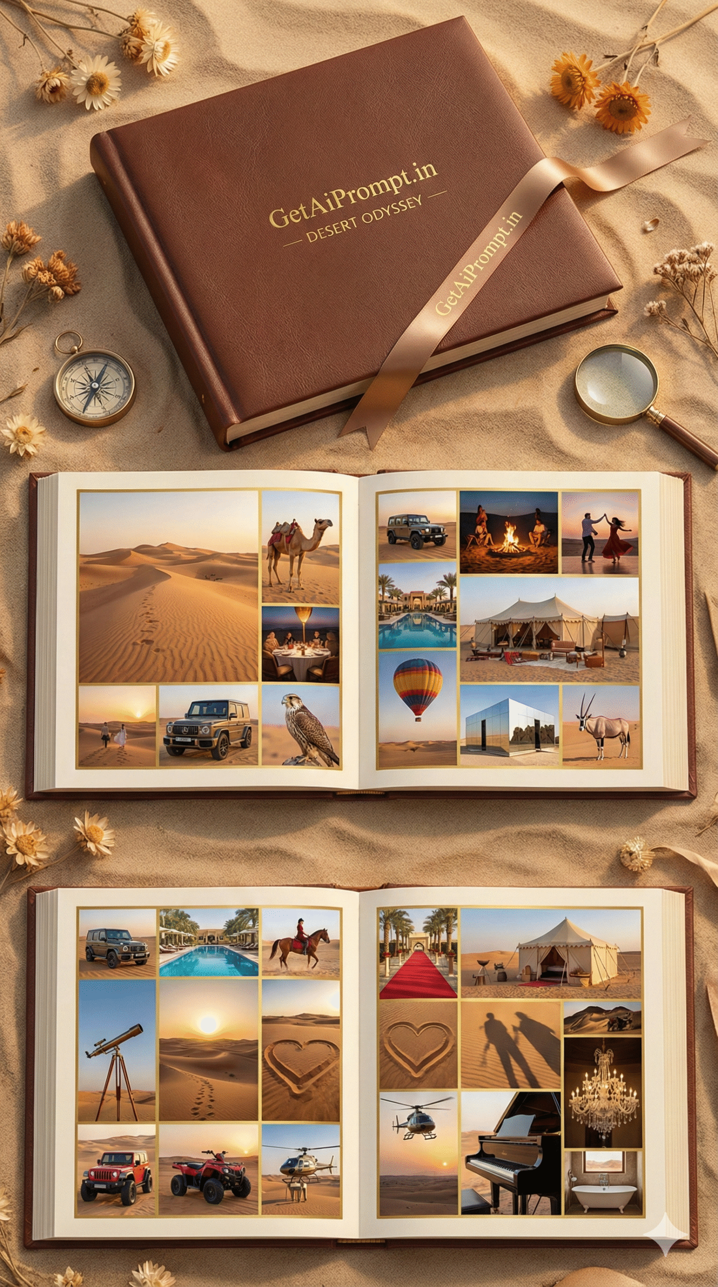 With GetAiPrompt, you don’t need to brave the heat or sandstorms. We have designed 10 cinematic prompts that capture the grandeur of the desert while keeping the focus on your intimacy and chemistry.