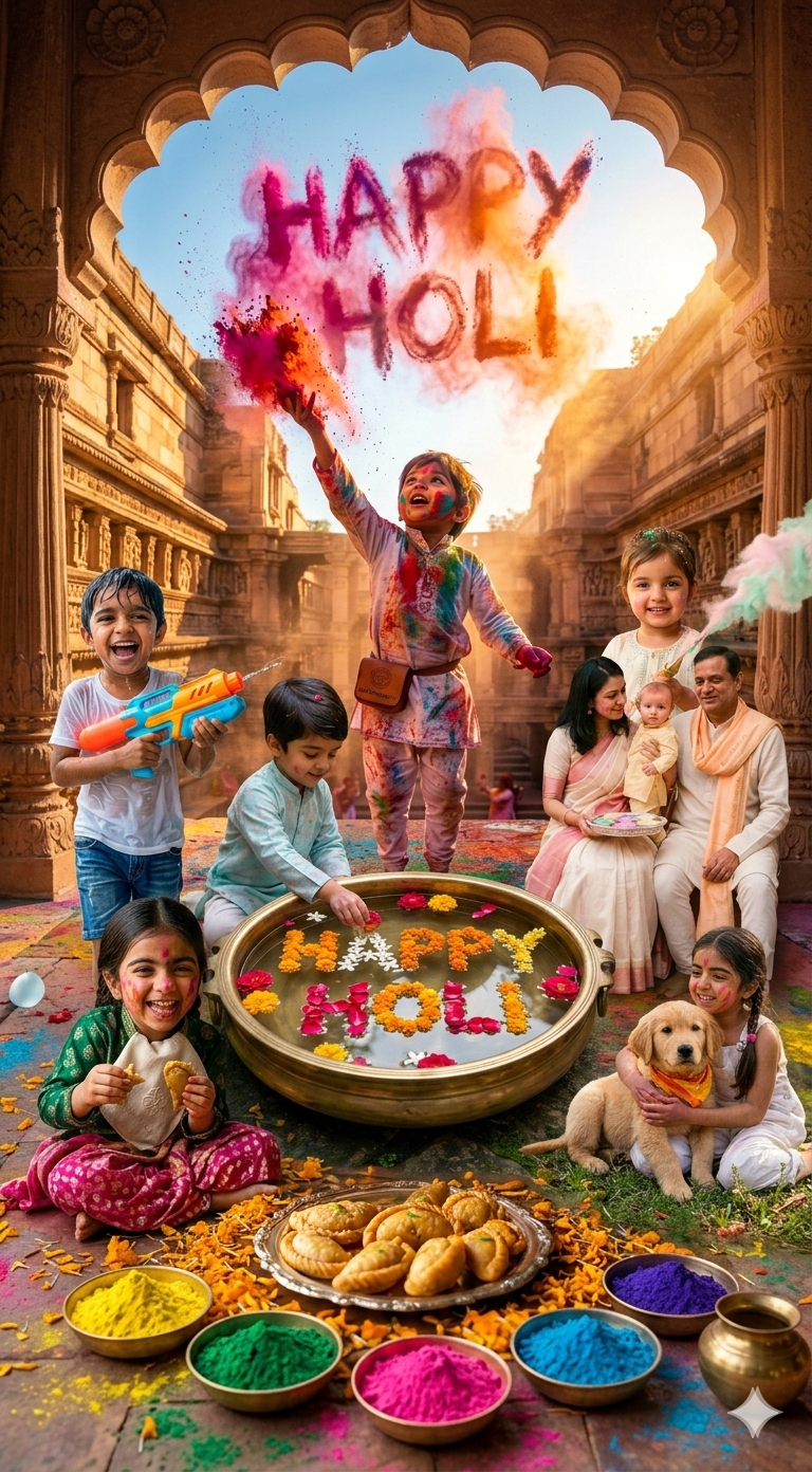 Kids AI Holi Photoshoot Prompts 2026: 100% Face Match Kids & Family Portraits