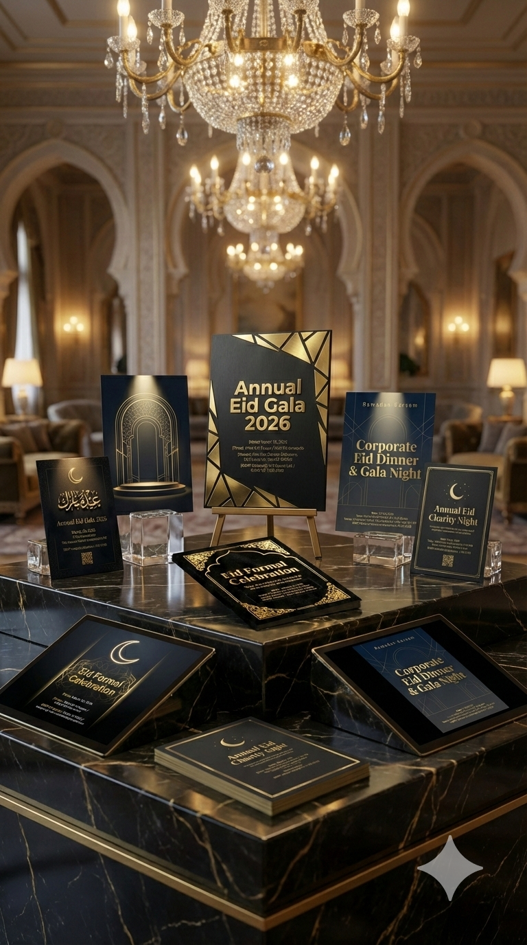 When organizing a corporate Eid dinner or a high-end community gala, a standard digital flyer simply will not suffice. You need an invitation that instantly communicates prestige, exclusivity, and impeccable taste. The black and gold color palette remains the undisputed…
