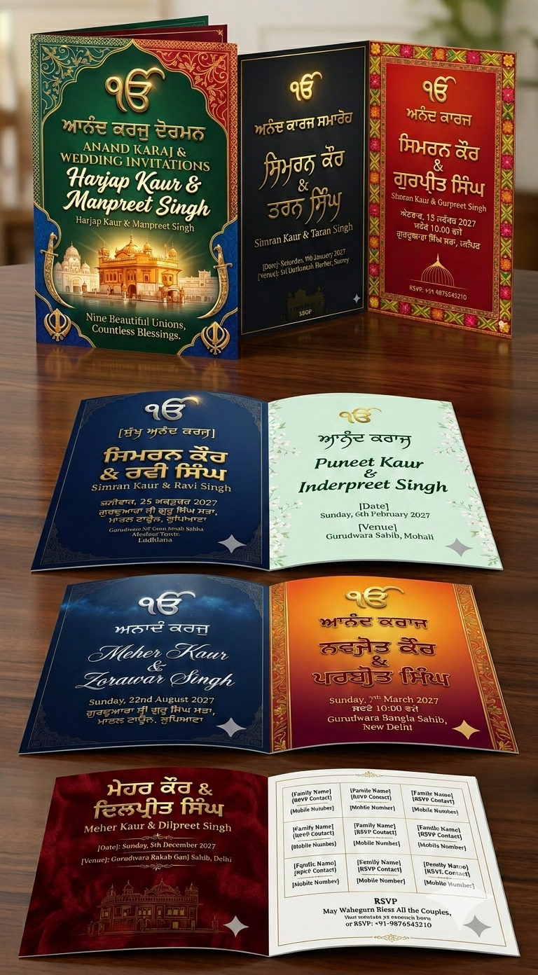 Best 35 AI Prompts for Sikh Anand Karaj Wedding Invitations Card (WhatsApp Ready)