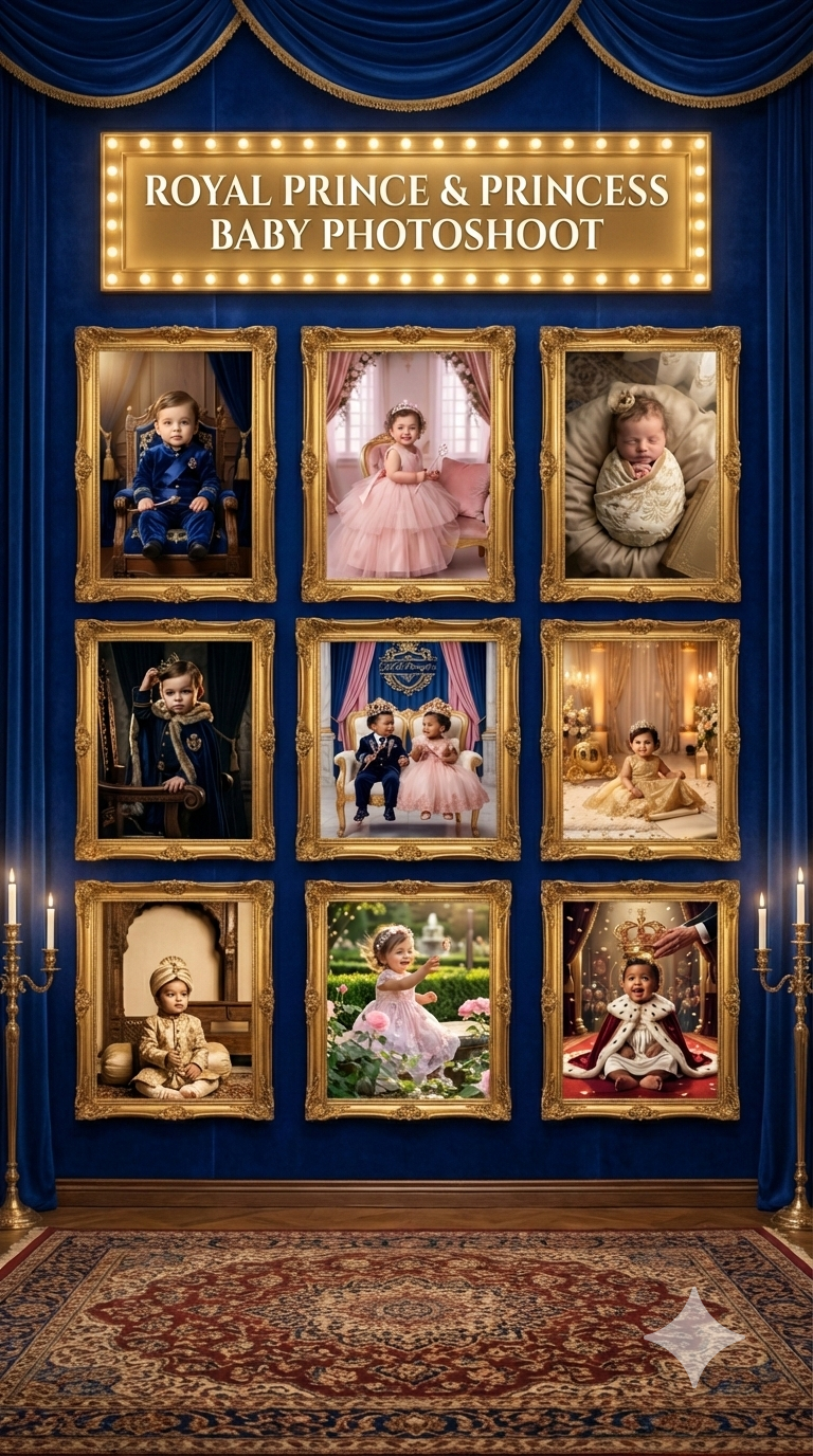10 Ultra-Realistic Royal Prince & Princess Baby Photoshoot AI Prompts (100% Face Match)