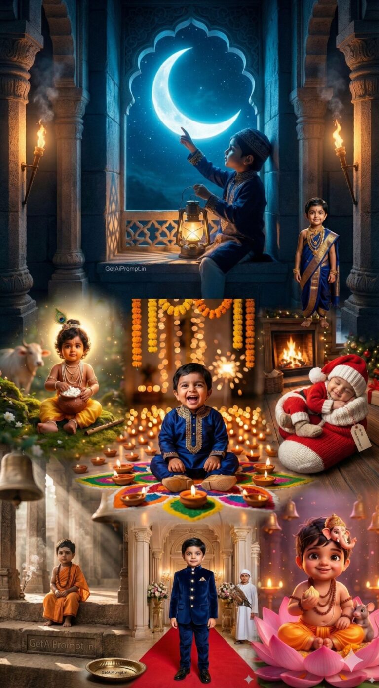 10 Viral Baby Festival AI Photo Prompts: Krishna, Diwali, Eid & Christmas 3D Illusions (Free Face Swap)
