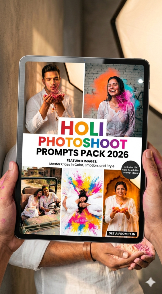 You will learn the exact framework to generate viral Holi studio photoshoot AI prompts. We focus entirely on hyper realistic studio quality festival portraits that perfectly match your real face. By combining specific lighting architectures with precise facial identity locks we eliminate all generative guesswork.