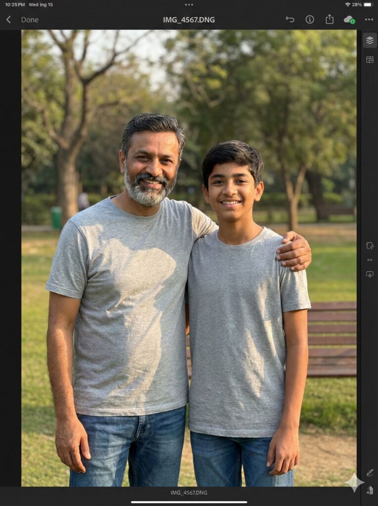 - Upload: Open the Google Gemini App and upload a clear photo of BOTH Father and Son.