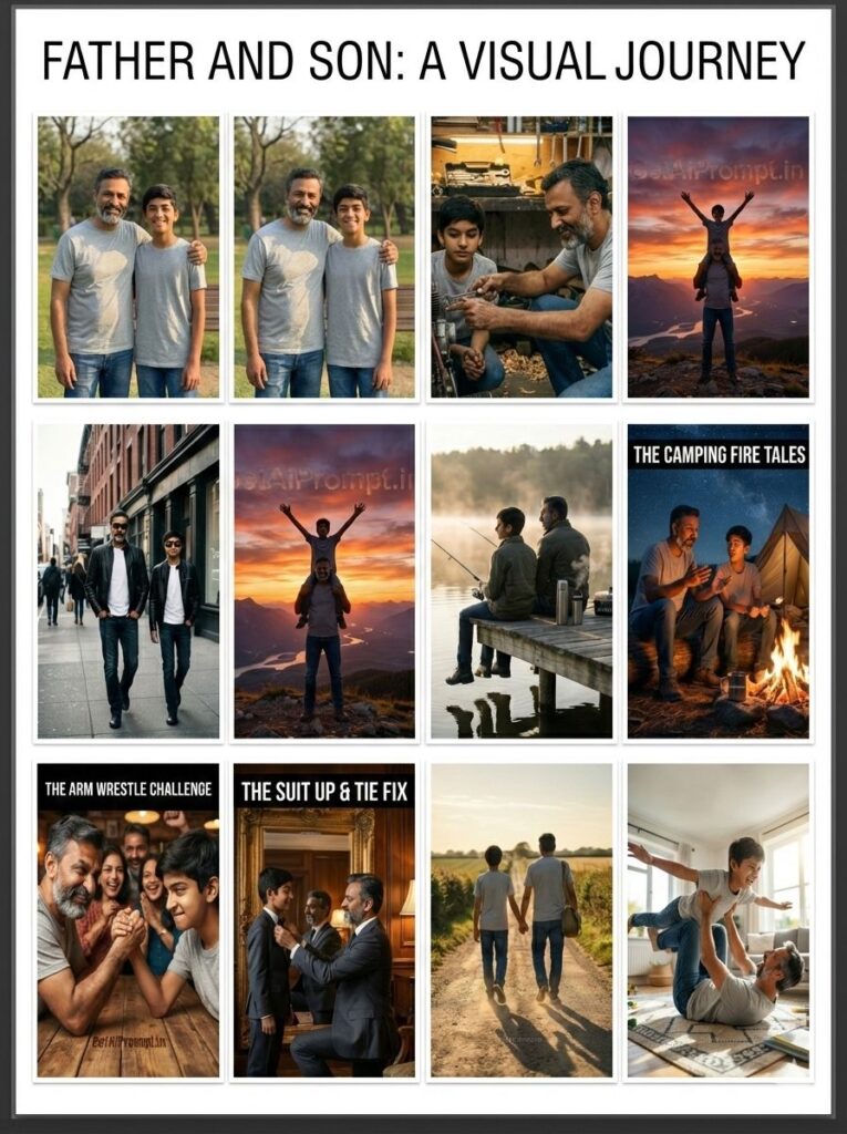 10 Creative “Father & Son” AI Prompts (Face Match) – Legacy, Connection & Candid Moments