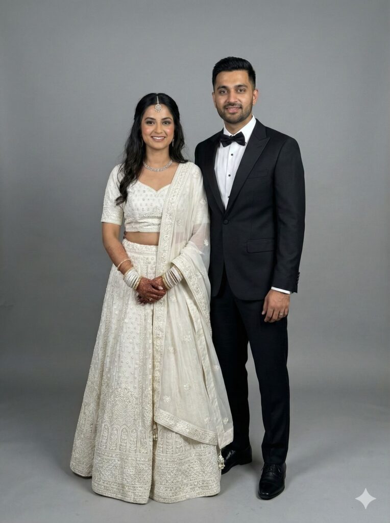 - Upload: Open the Google Gemini App and upload a clear photo of BOTH the Bride and Groom.