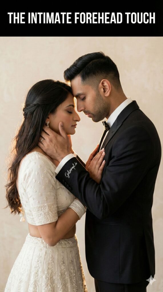- Emotional Stillness: Poses like “The Intimate Forehead Touch” convey a sense of calm and privacy amidst the chaos of a wedding, which feels luxurious.
