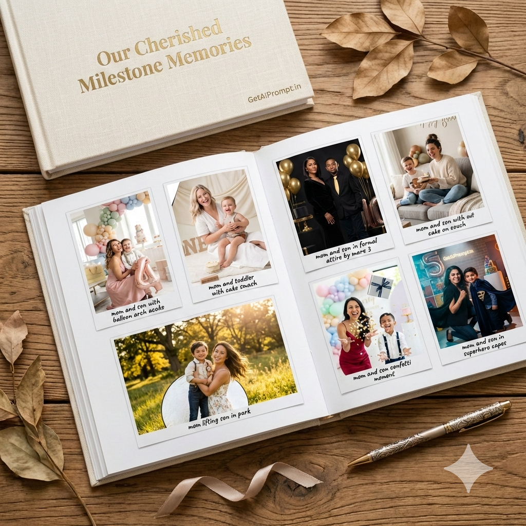 These prompt templates are designed for parents who want magazine quality memories without the traditional studio hassle. They are perfect for mothers planning a first birthday celebration, a toddler milestone, or a teenage son portrait.