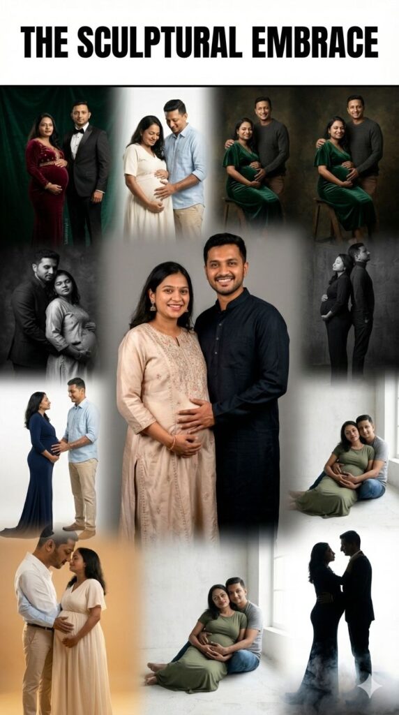 - Physical Connection: Poses that involve touch (hands on bump, leaning on each other) trigger oxytocin in the viewer, creating a feeling of warmth.