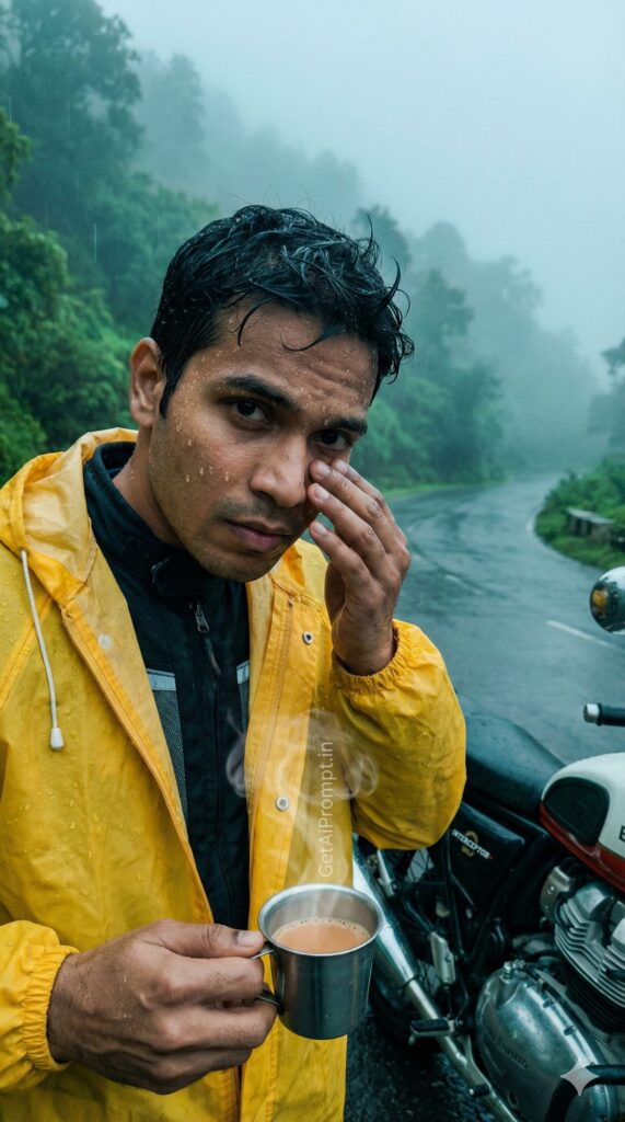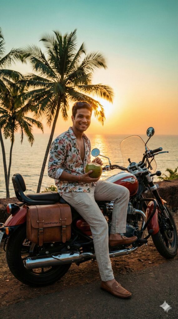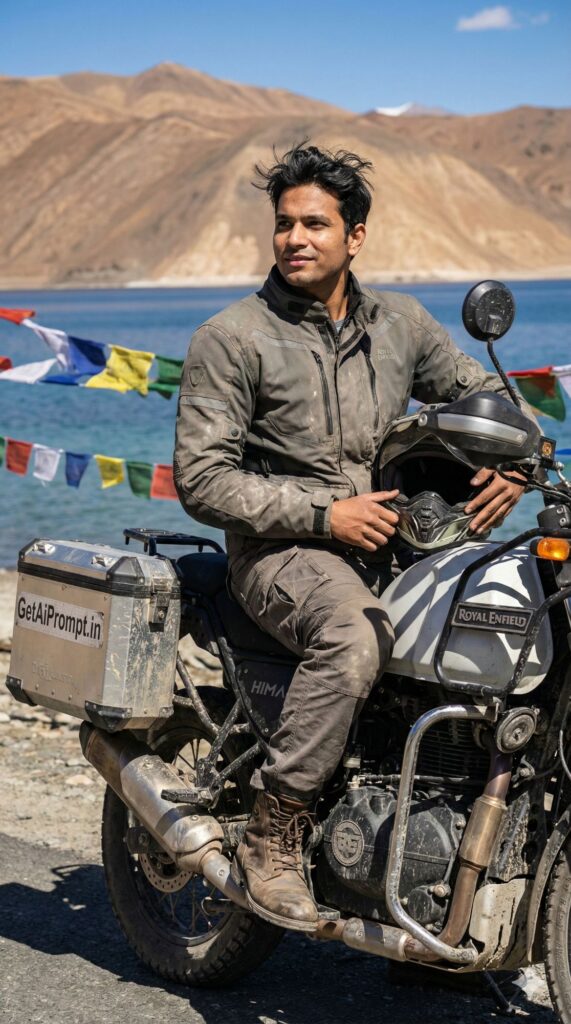 3. The “Face Match” Tweak: Gemini sometimes struggles with direct face swapping in one go. If the face doesn’t match, modify the prompt to say: “Photorealistic portrait of [describe yourself roughly, e.g., an Indian man with a beard] riding a Royal Enfield…” followed by the rest of the scene description.