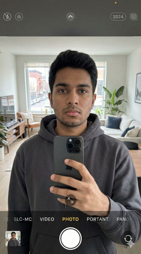 14. [2010s label]: High-res digital, hipster aesthetic, smartphone selfie.
