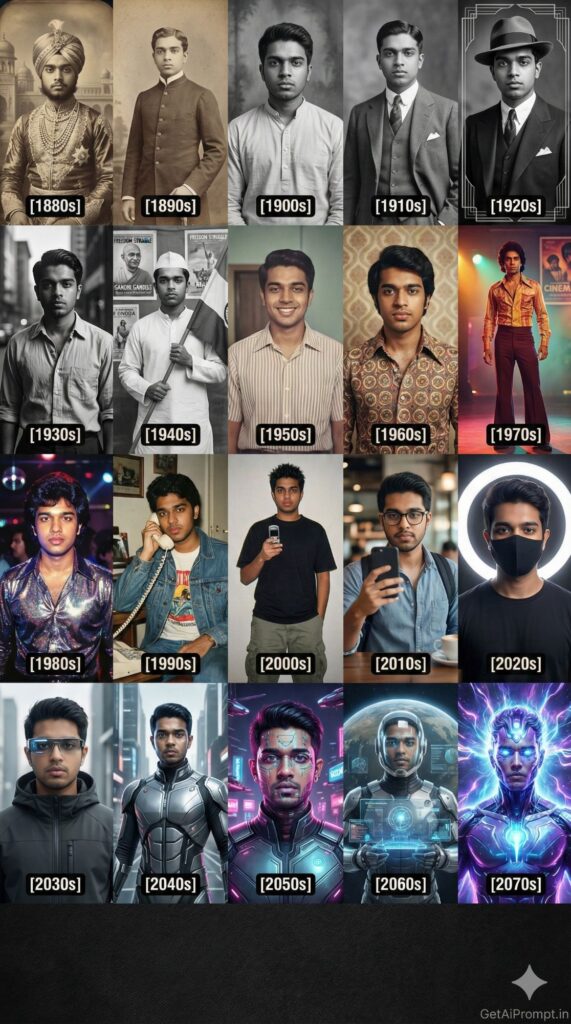 Namaste Time Travelers! The biggest trend on Reels right now is showing your character evolving through the decades. It’s a mix of history, fashion, and technology.