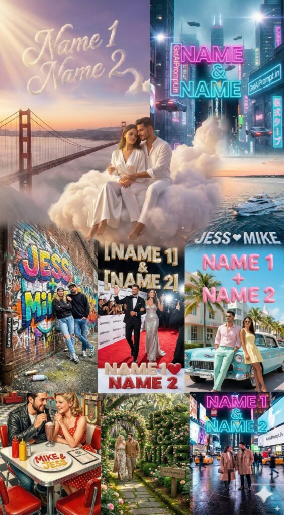 This article changes that. We are not just giving you text; we are giving you engineering-grade syntax. These prompts are designed with specific “weighting” on 3D typography and facial adherence. By combining a reference image with these highly descriptive text prompts, you force the AI to override its default randomization. The result? A hyper-realistic, 4K image that looks like a professional photoshoot, featuring your names in stunning 3D art, ready to dominate Instagram Reels and TikTok algorithms in the US market.