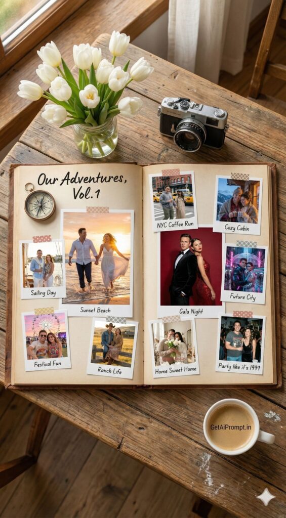 “Stop posting boring selfies with your partner! 🛑📸 The algorithm wants cinematic love stories. Whether you’re chasing that ‘Old Money’ Hamptons vibe, the ‘Y2K’ disposable camera look, or the viral ‘Faceless’ aesthetic from Pinterest—these AI prompts are your cheat code. Transform a basic pic into a ‘Vogue’ cover or a ‘Cyberpunk’ masterpiece. Copy, paste, and watch the ‘Goals’ comments roll in! 💍✨”